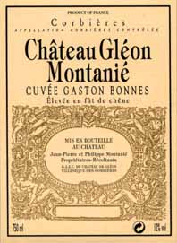 Corbières - CHATEAU GLÉON MONTANIÉLa cuvée GASTON BONNES, du nom de l'ancêtre qui le premier cultiva dès 1860 ce superbe terroir au coeur de la vallée du Paradis, est un vin généreux. Ample et puissant en bouche, avec une finale légèrement épicée. Ouvrir trois heures avant de servir à 16°C sur gigot d'agneau ou filet de boeuf aux cèpes."